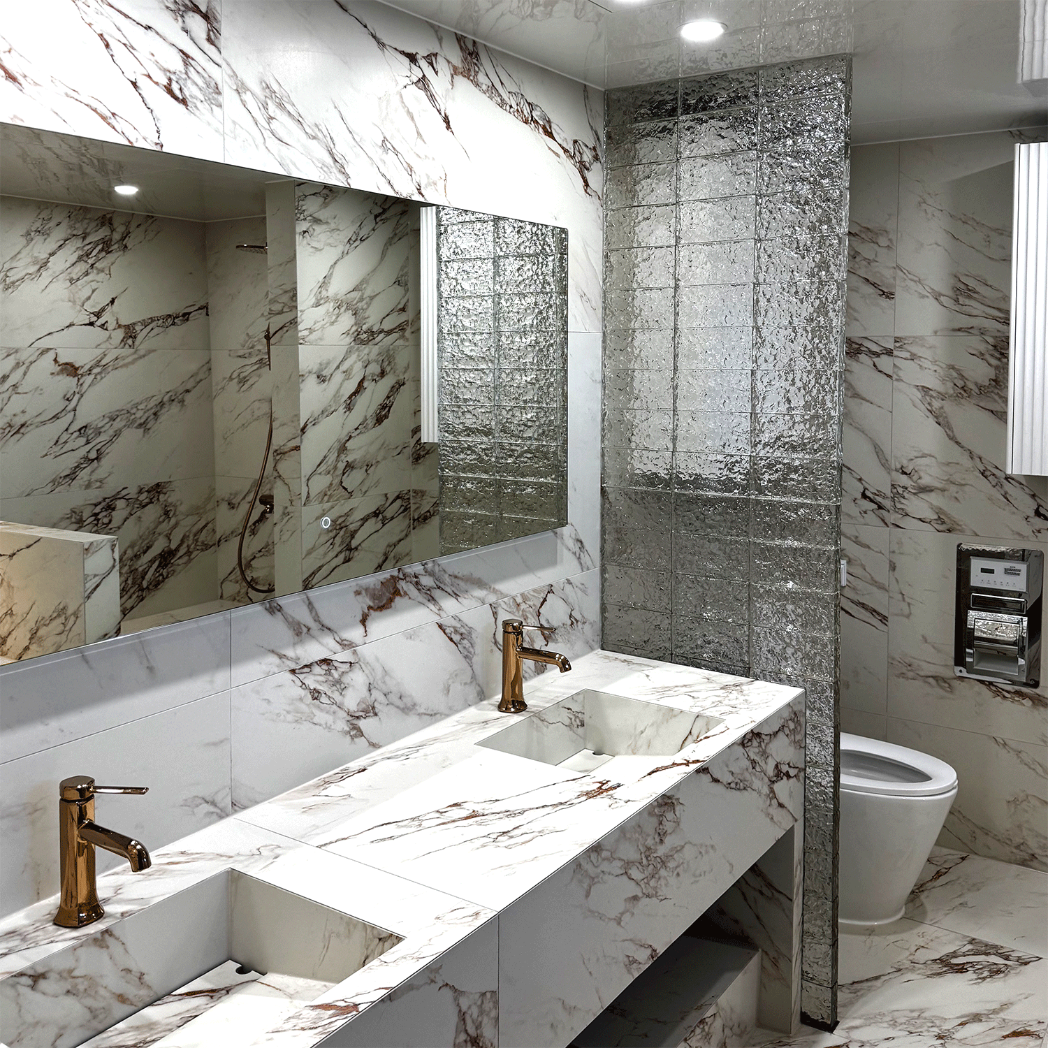 [ 유리벽돌을 활용한 욕실 파티션 시공 ] 세면대와 변기 사이에 포인트 파티션으로 유리벽돌 시공을 진행하였습니다. 공간을 자연스럽게 나누고, 반투명 텍스처로 답답함 없이 분위기 UP 시켜줍니다.입체적인 표면의 감성이 욕실 타일과 어우러져 고급스러운 무드 완성해줍니다. [ 시공 과정 및 결과 자세히 보러가기 ]https://blog.naver.com/seochangbrick/224090060912