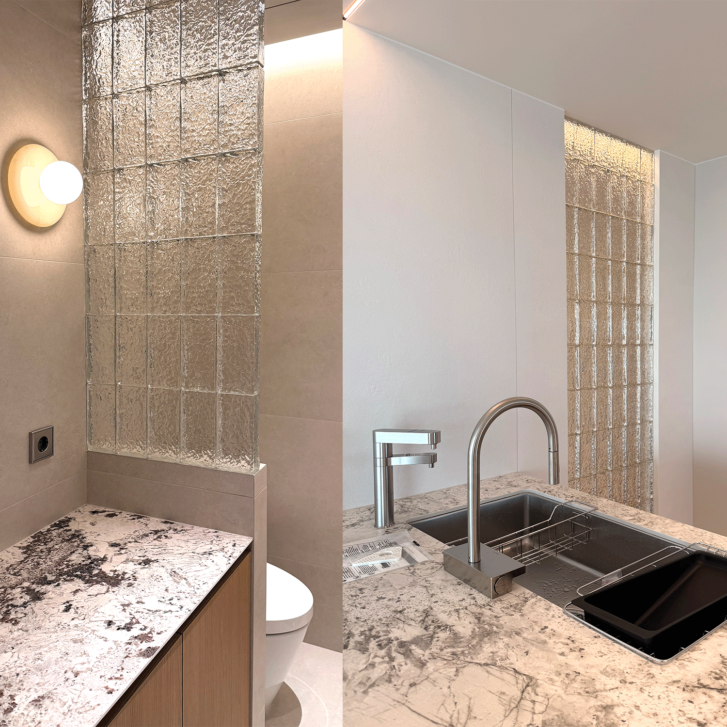 'SC 프론트다이아몬드'로 완성한 공간 분리와 빛의 연출 유리벽돌은 가리고 싶은 부분과 드러내고 싶은 부분을 동시에 고려해야 하는 공간에서 매우 효과적인 자재입니다.벽처럼 확실한 구획이 가능하면서도, 일반 벽체에서 느껴지는 답답함은 최소화할 수 있습니다. 송파 아파트 현장처럼 욕실 파티션, 복도 포인트, 주방 인테리어 등 다양한 공간에 적용이 가능하며 전체 인테리어의 완성도를 한 단계 끌어올려 줍니다. [ 시공 과정 및 결과 자세히 보러가기 ]https://blog.naver.com/seochang7777/224135171069