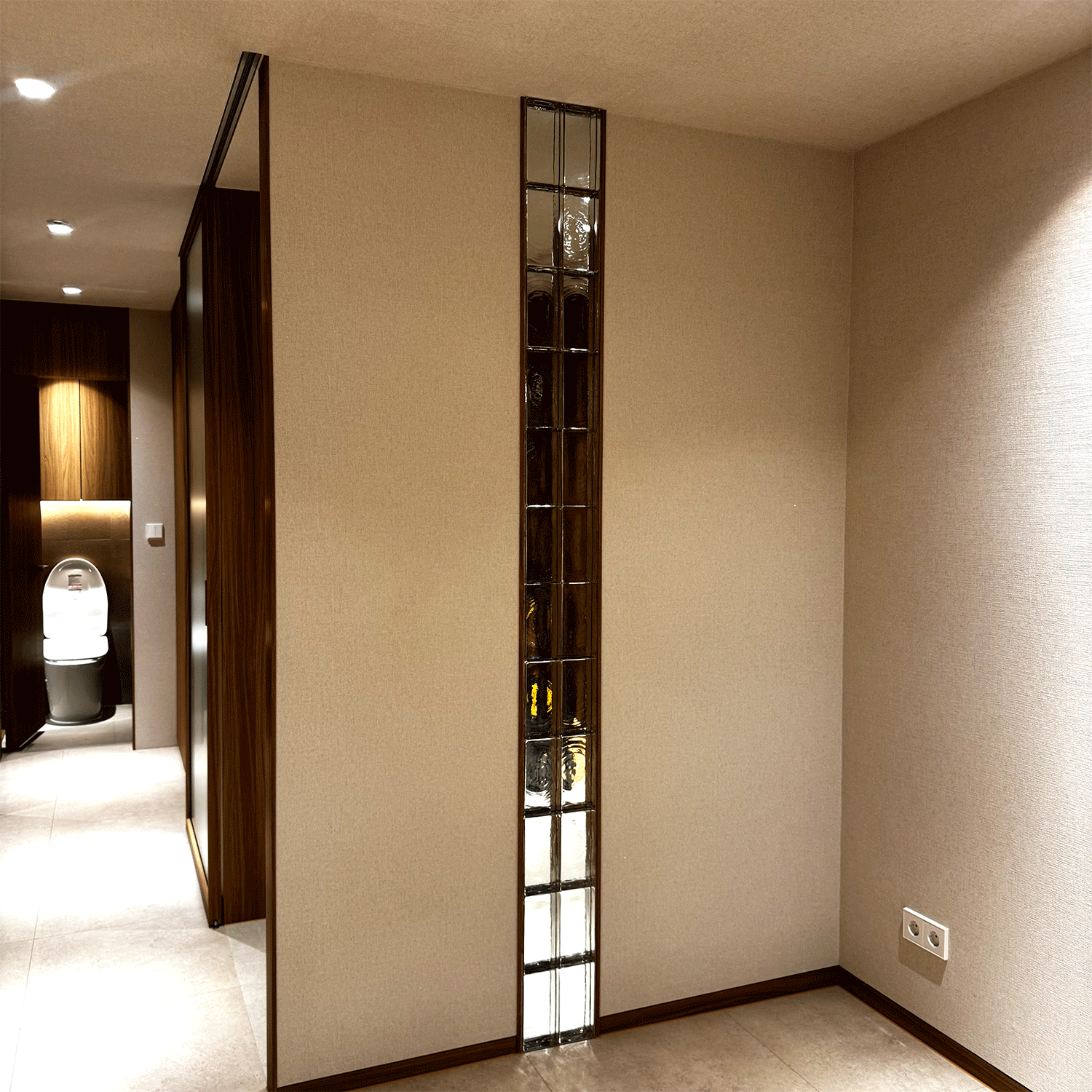 'SC 베이직클리어' 포인트 시공 벽 중간에 유리벽돌을 두 줄 시공하여 포인트 주었습니다.