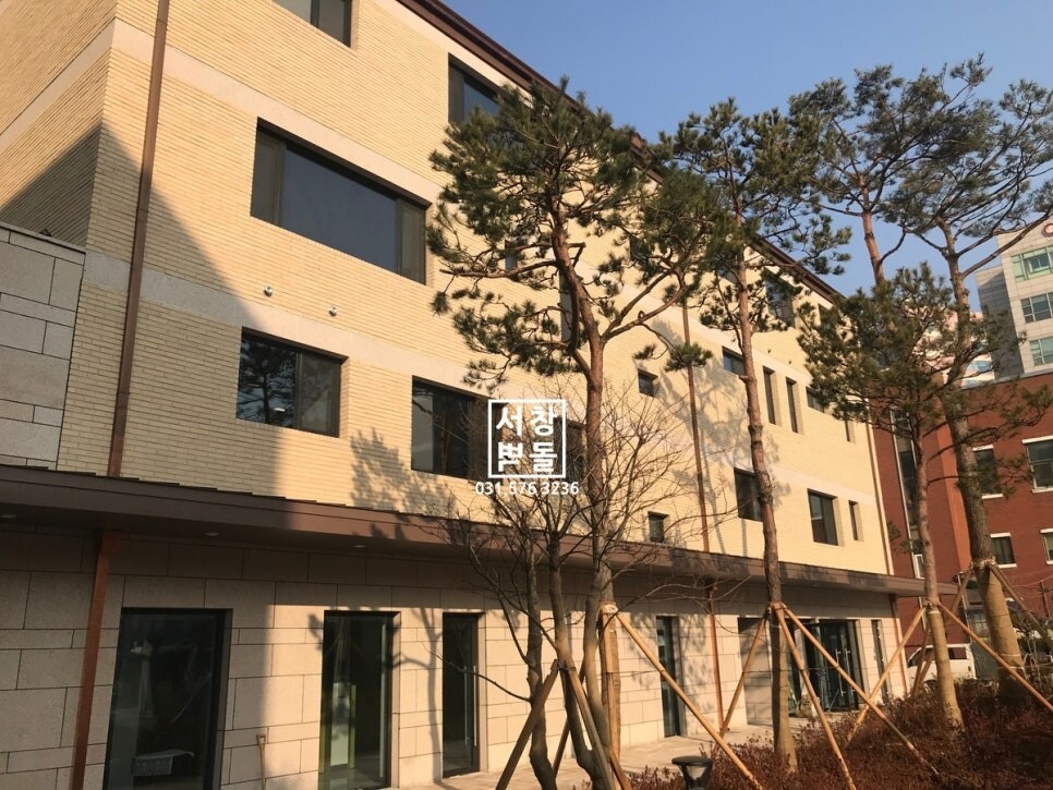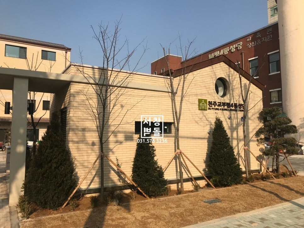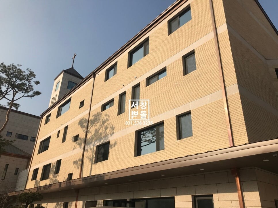 노란빛이 약하게 도는 밝은 색상의 점토벽돌입니다.