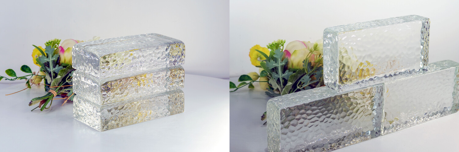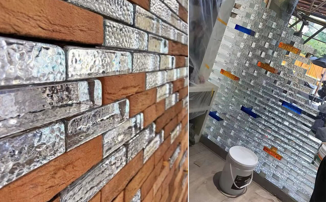 다양한 질감과 색상의 유리벽돌을
