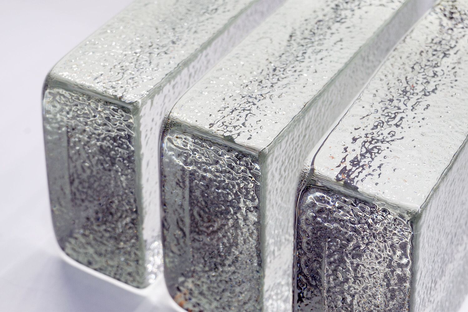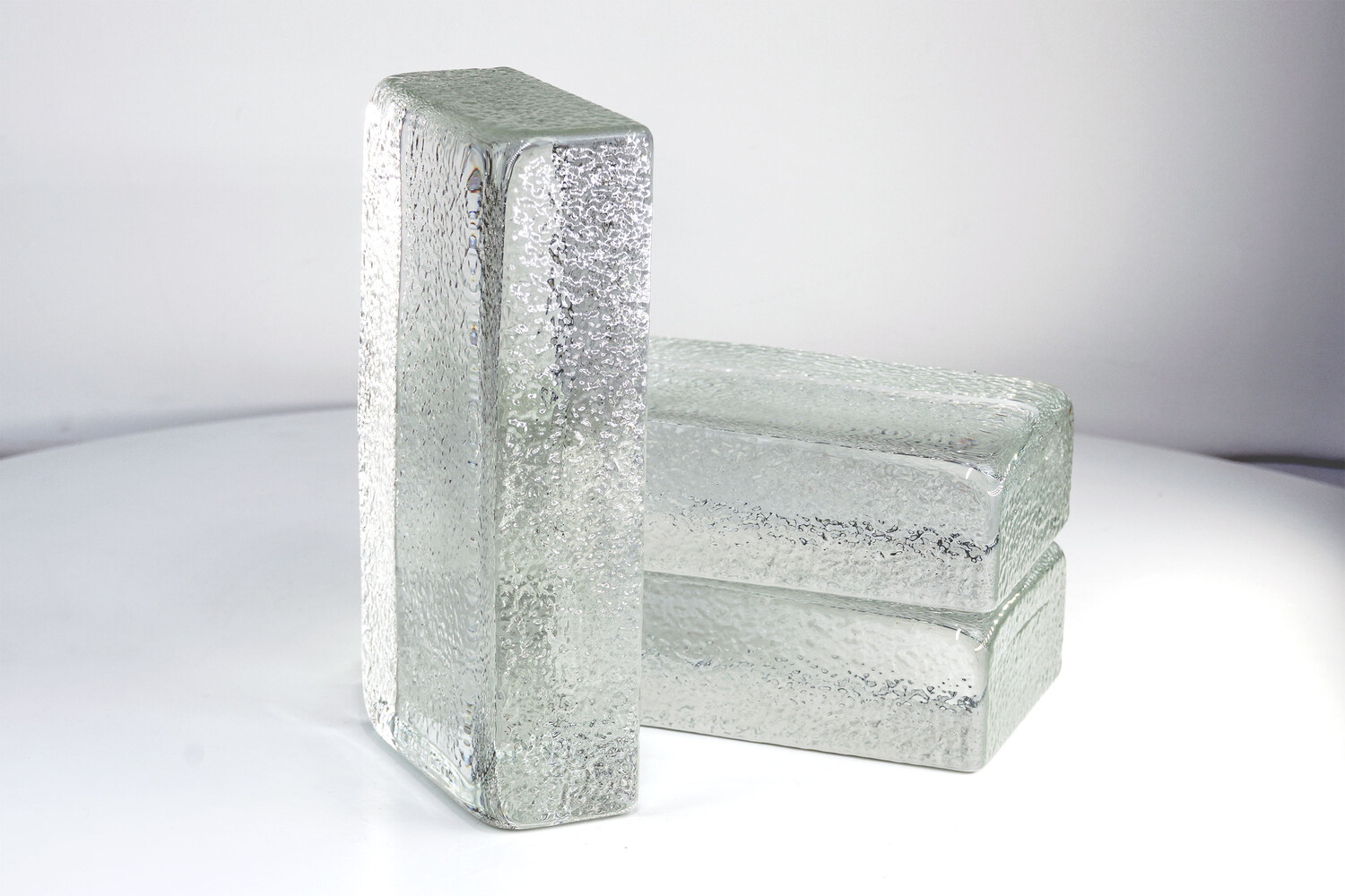 마치 잘 익은 오렌지 껍질처럼 정돈된 요철이 특징인 유리벽돌입니다.