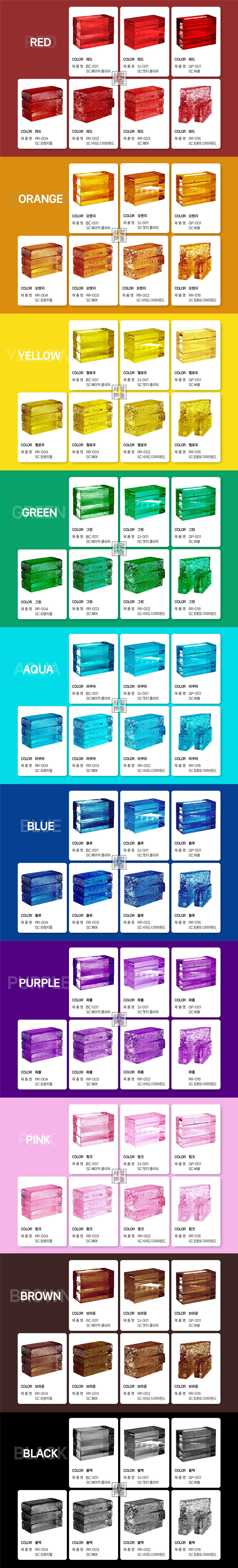9가지 대표 디자인의 유리벽돌이 준비되어 있습니다.