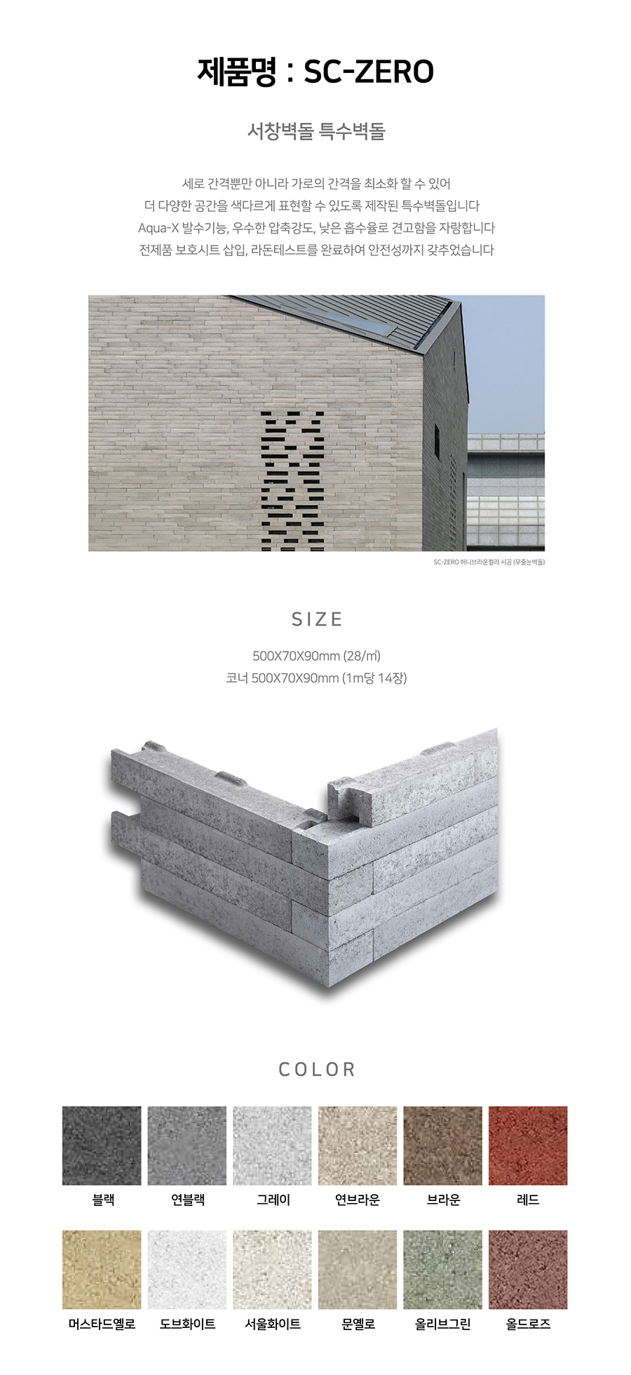 세로 간격 뿐만 아니라 가로의 간격을 최소화 할 수 있어 더 다양한 공간을 색다르게 표현할 수 있도록 제작된 특수벽돌 입니다