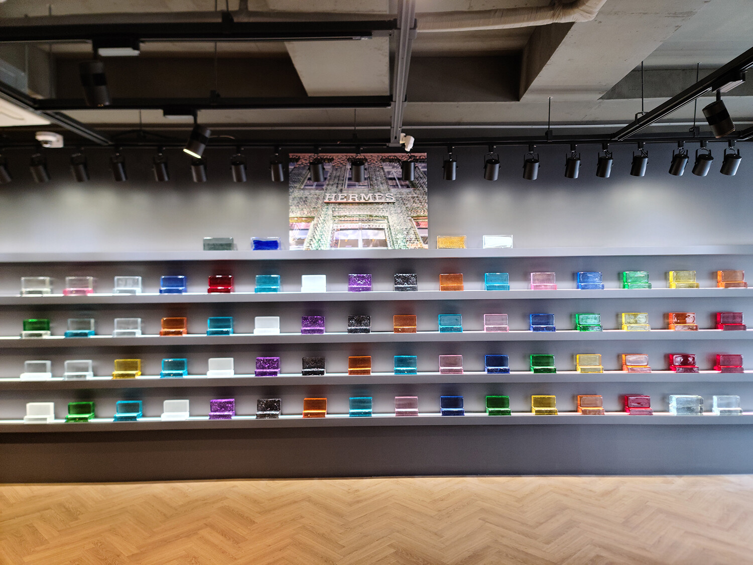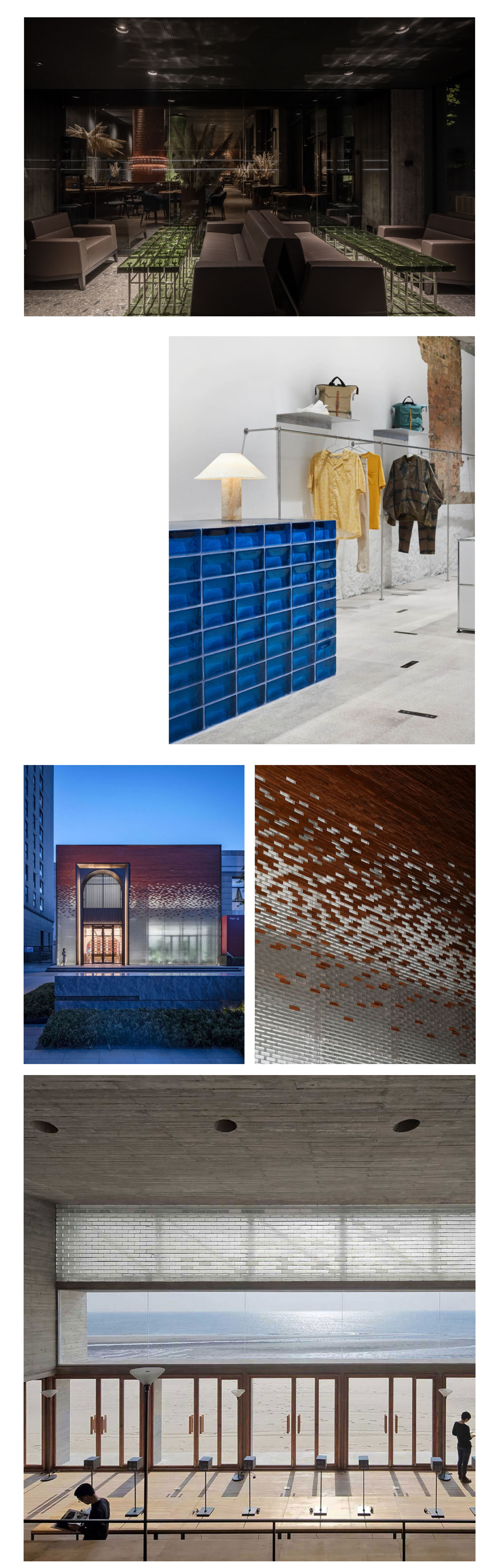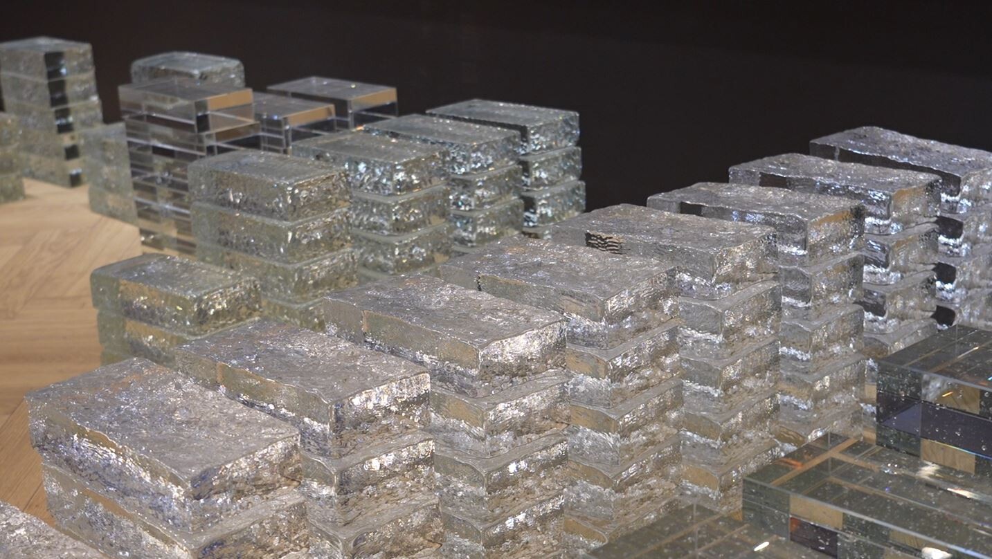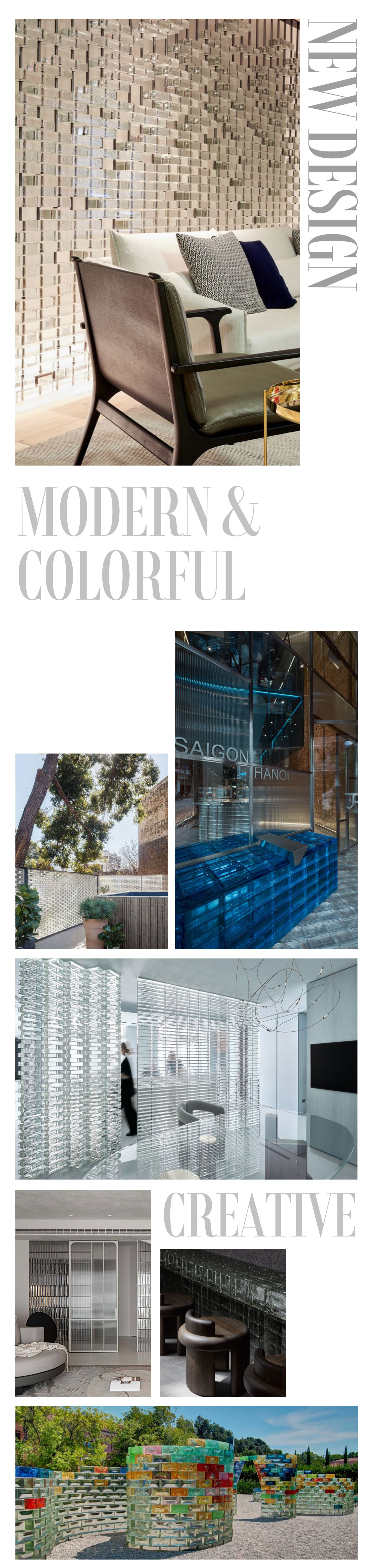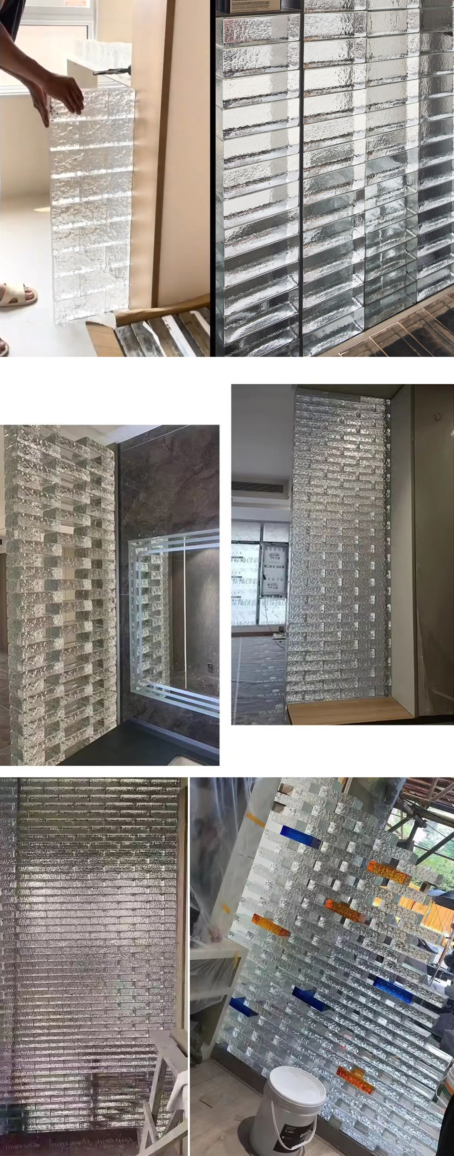 다양한 질감과 색상의 유리벽돌을