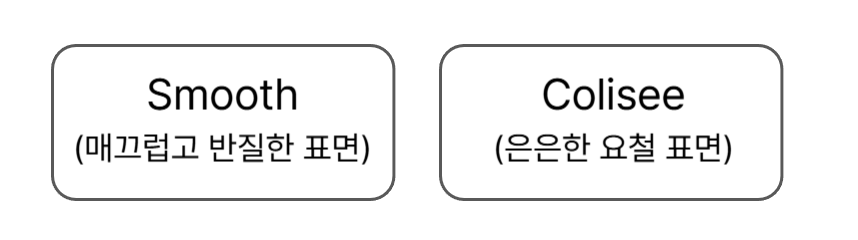 'Smooth(매끄럽고 반질한 표면)', 'Colisee (은은한 요철 표면)'으로 각 시리즈는 서로 다른 질감과 표면감을 가지고 있어, 건축물의 디자인 콘셉트와 용도에 맞게 선택하실 수 있습니다.