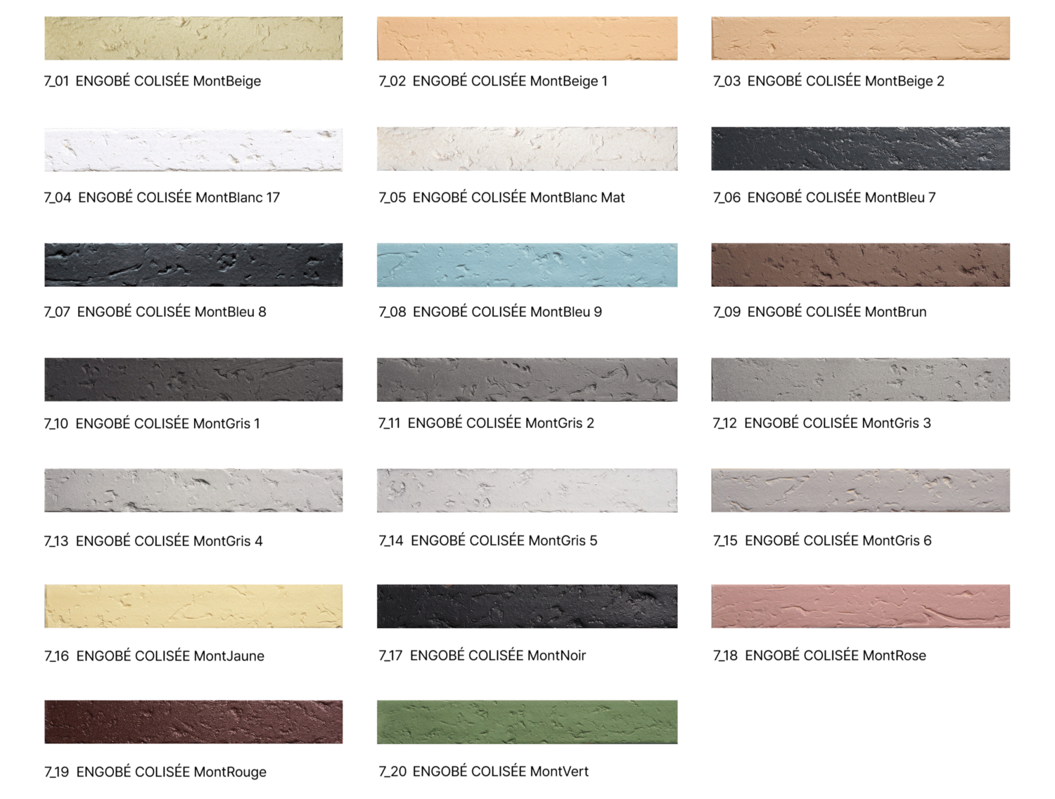 Engobé(앙고베)는 자연 테라코타에 바르는 색점토 코팅을 의미합니다. 이를 통해 전통 점토의 질감을 유지하면서도 테라코타의 모든 색상을 구현할 수 있습니다. 어두운 색부터 파스텔 색까지, 'SC 앙고베 컬러 테라코타'는 창의적인 건축 디자인의 가능성을 펼쳐 드립니다.