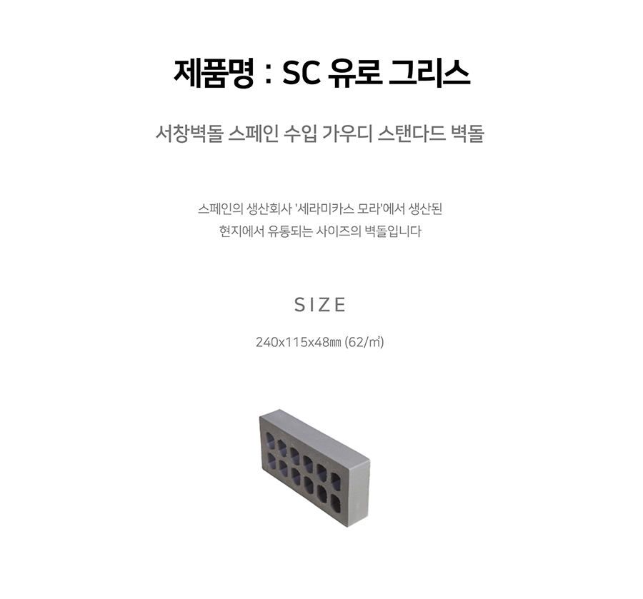 스페인의 생산회사 '세라미카스 모라'에서 생산된 현지에서 유통되는 사이즈의 벽돌입니다