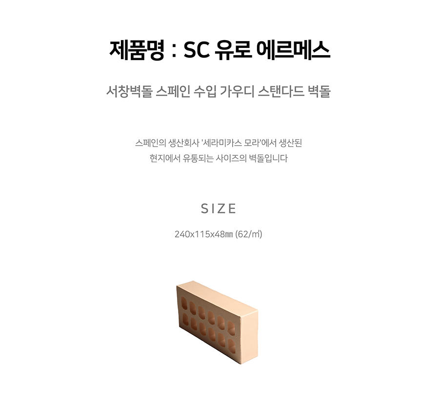 스페인의 생산회사 '세라미카스 모라'에서 생산된 현지에서 유통되는 사이즈의 벽돌입니다