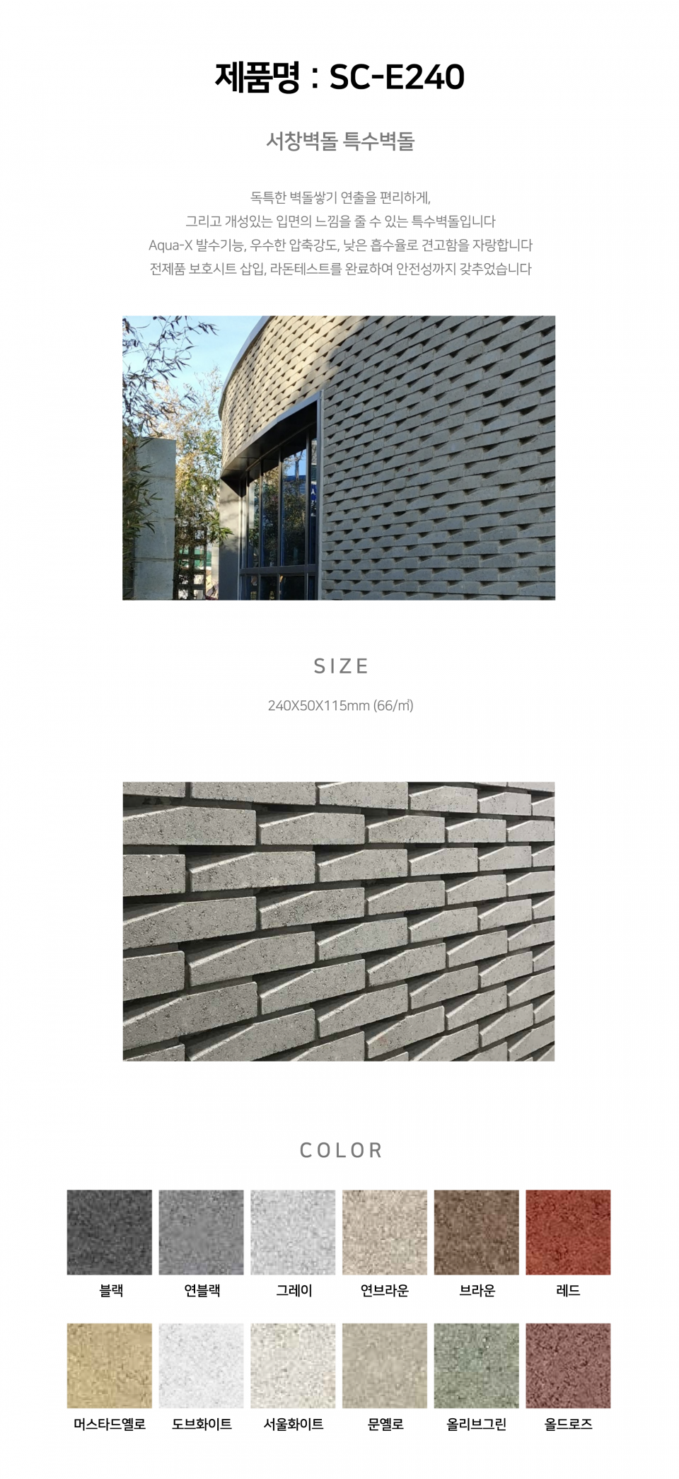 그리고 개성있는 입면의 느낌을 줄 수 있는 특수벽돌입니다
