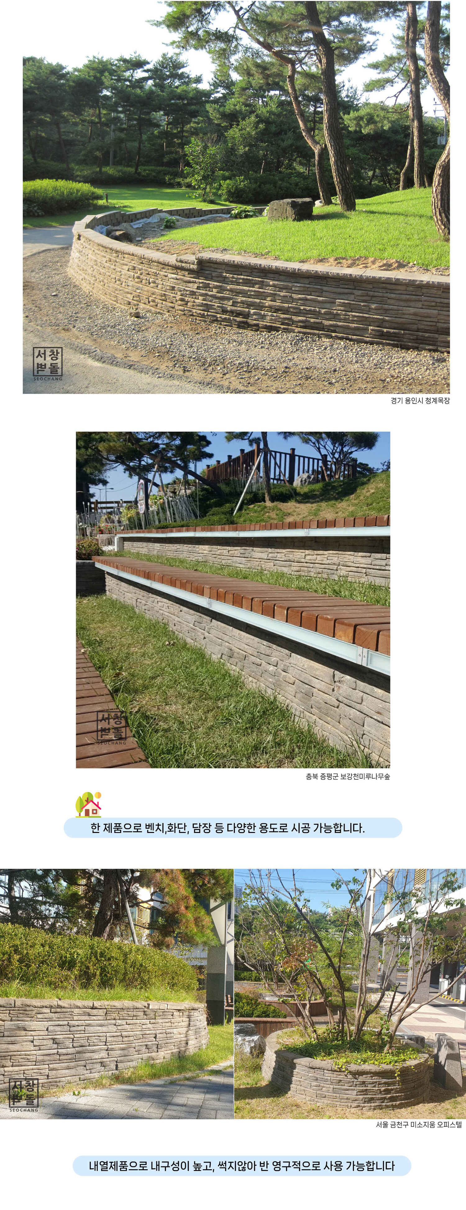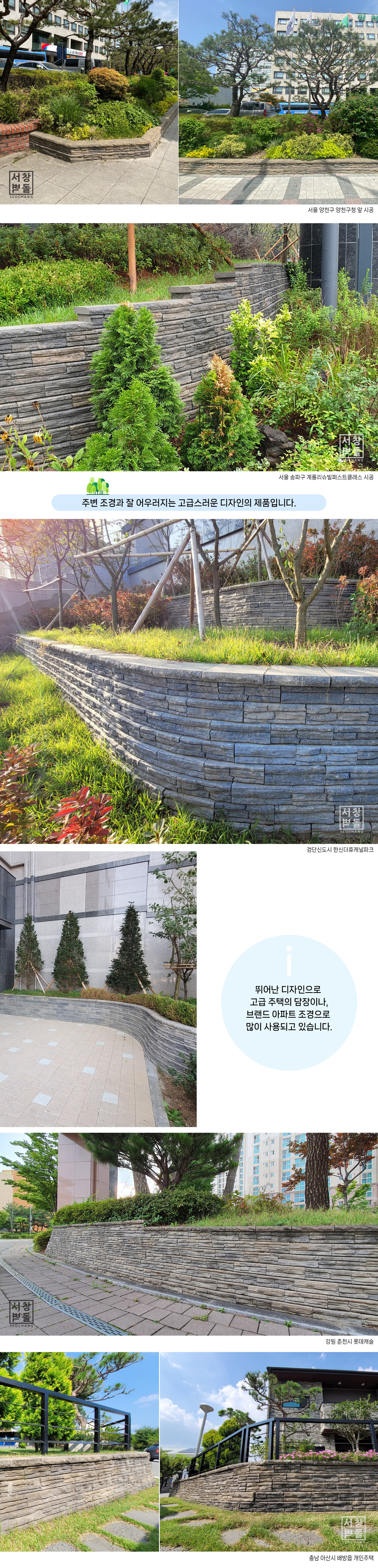 높은 담장 부터 낮은 화단까지 만들 수 있습니다.