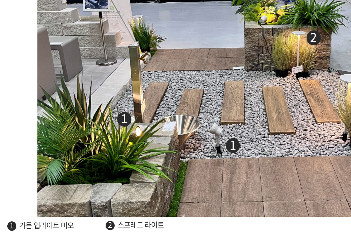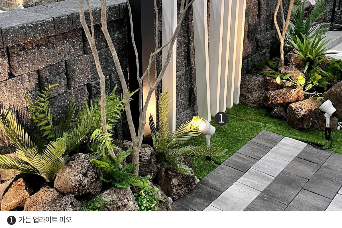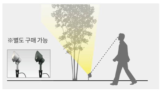 - 숲처럼 넓은 공간을 업라이트 조명 세트로 한 번에 커버할 수 있는 합리적 구성