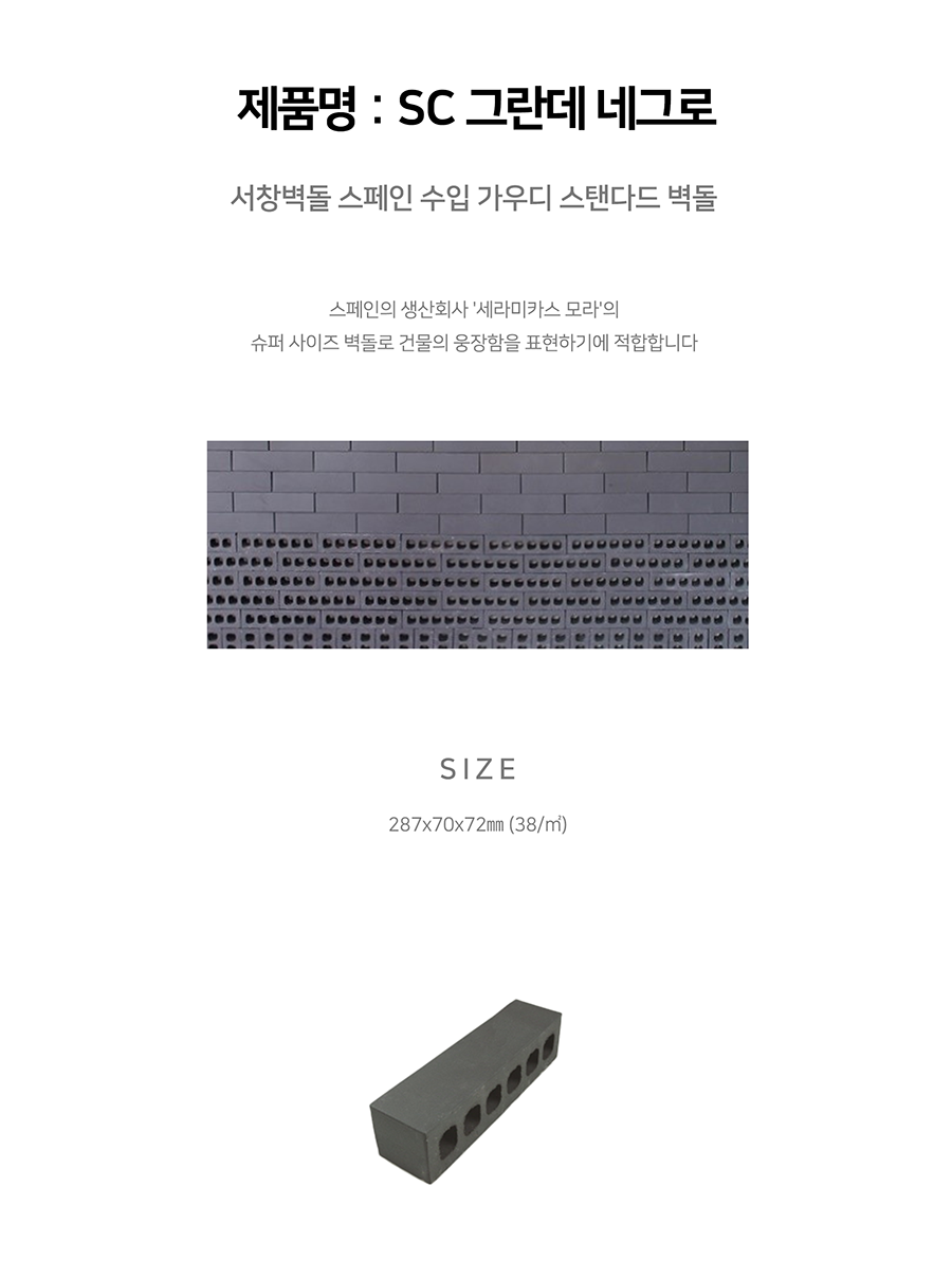 스페인의 생산회사 '세라미카스 모라'의 슈퍼 사이즈 벽돌로 건물의 웅장함을 표현하기에 적합합니다.