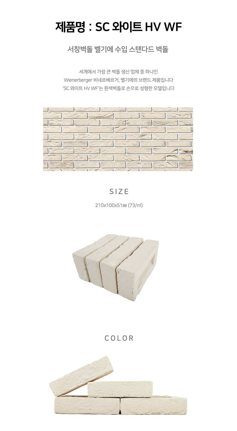 'SC 와이트 HV WF'는 흰색벽돌로 손으로 성형한 모델입니다.