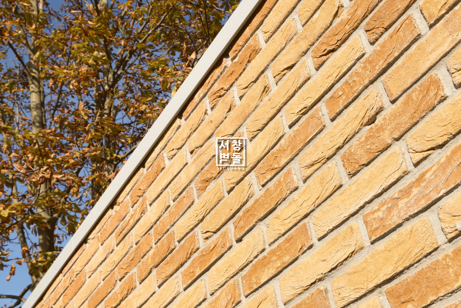 옐로, 골드, 황토색들이 섞여 있는 컬러감을 지닌 벽돌입니다.