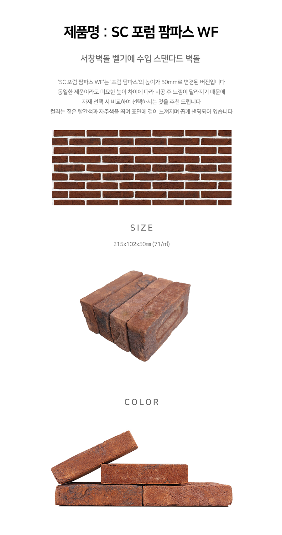 SIZE : 215x102x50㎜ (71/㎡)