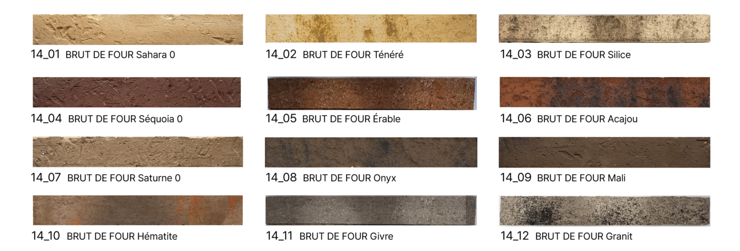 Brut de four(가마 소성 그대로의 내추럴한 마감)은 가마 소성 후 별도의 가공 없이, 자연스럽고 거친 표면 질감과 색감을 그대로 살린 제품입니다.테라코타 본연의 투박하면서도 따뜻한 아름다움을 공간에 그대로 전해줍니다.