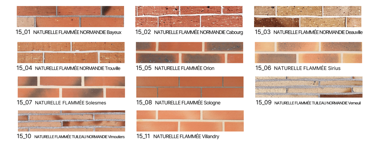 Terre cuite naturelle flammée(불꽃 무늬가 있는 자연 테라코타)는 자연 테라코타에 불꽃으로 태운 듯한 독특한 무늬와 색감을 더한 제품입니다. 불꽃이 만들어낸 자연스러운 그라데이션과 따뜻한 색조가 어우러져, 공간에 전통적이면서도 개성 있는 분위기를 연출합니다.