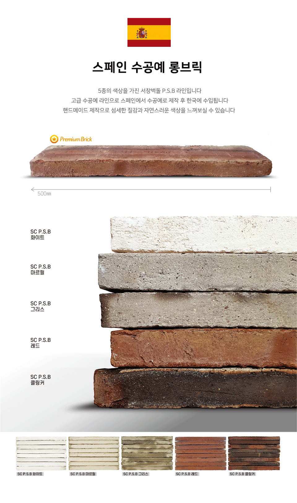 5종의 색상을 가진 서창벽돌 P.S.B 라인입니다.
