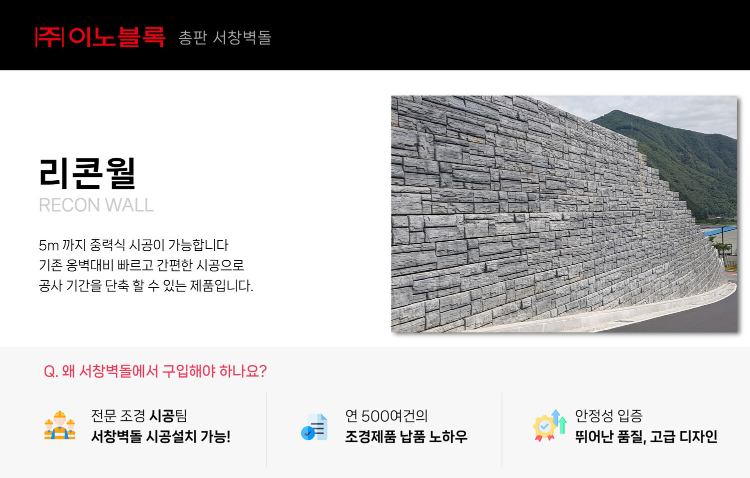 보다 안정적으로 사용이 가능한 옹벽 '리콘월'입니다.