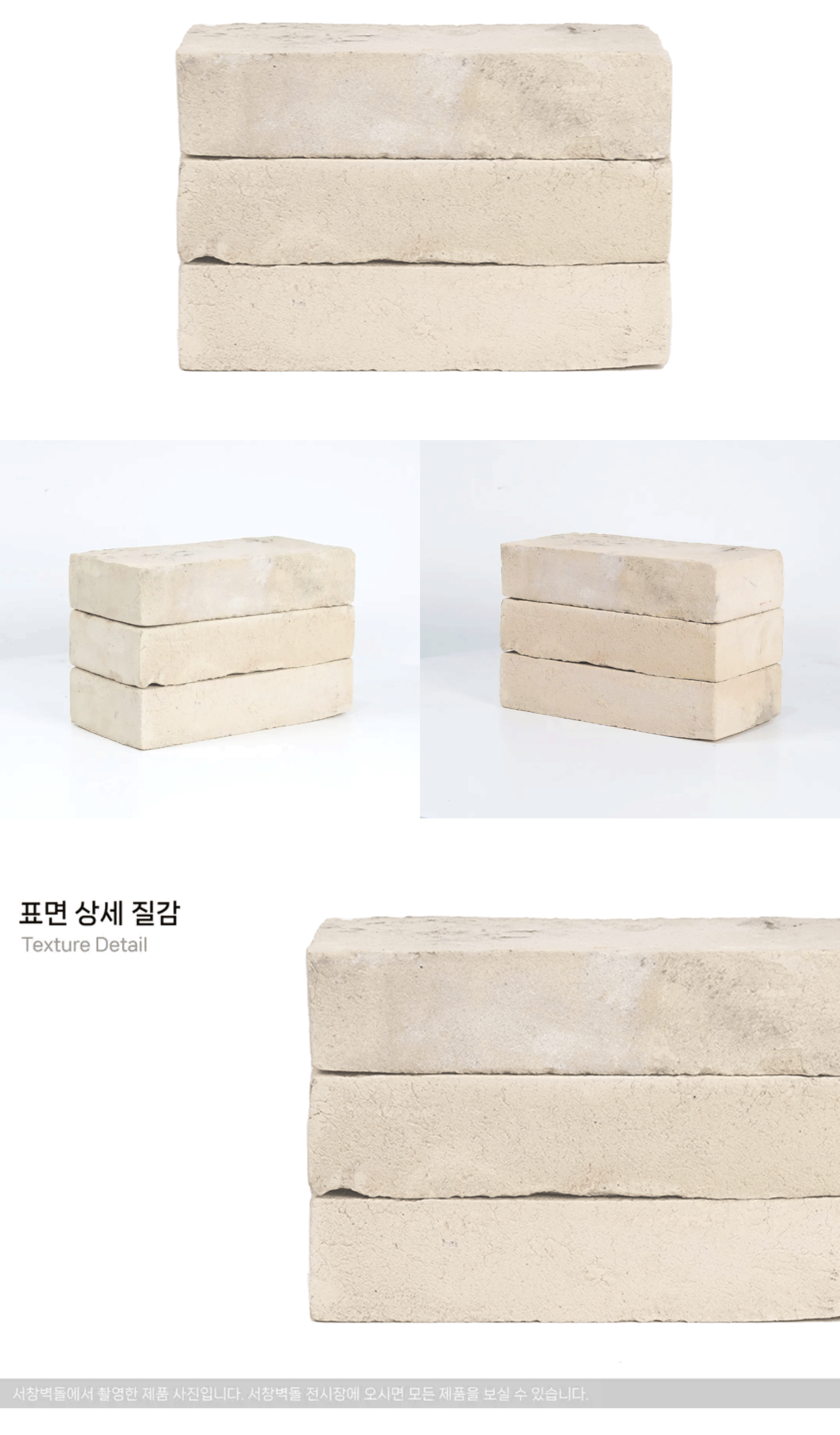 흰색 또는 아이보리 벽돌 중에서 은은한 색감과 세련됨을 느낄 수 있는 벽돌입니다.