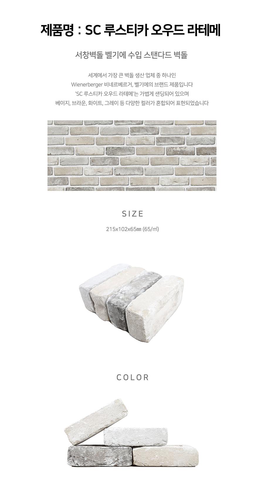 'SC 루스티카 오우드 라테메'는 가볍게 샌딩되어 있으며 베이지, 브라운, 화이트, 그레이 등 다양한 컬러가 혼합되어 표현되었습니다.