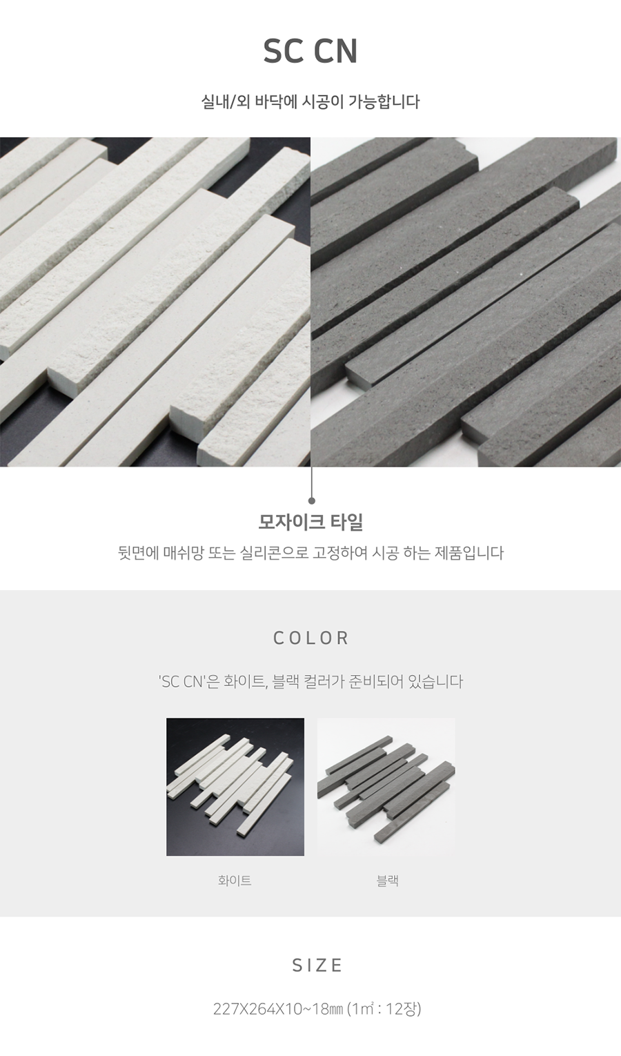 SIZE : 227X264X10~18㎜ (1㎡ : 12장)