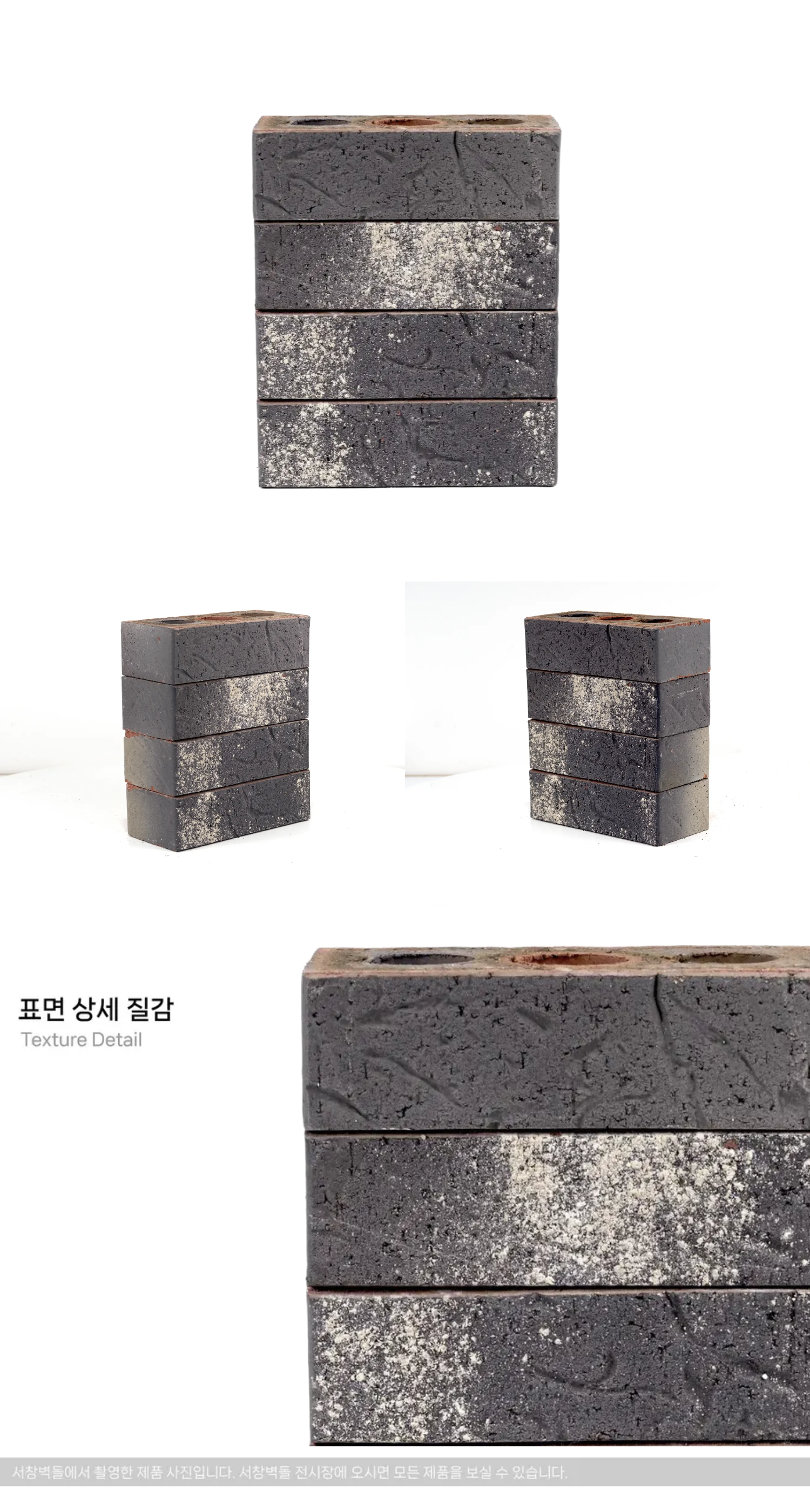 점토로 만든 깔끔한 형태의 국내산 고벽돌입니다. 표면에 고벽돌 텍스쳐가 자연스럽게 표현되어있습니다.