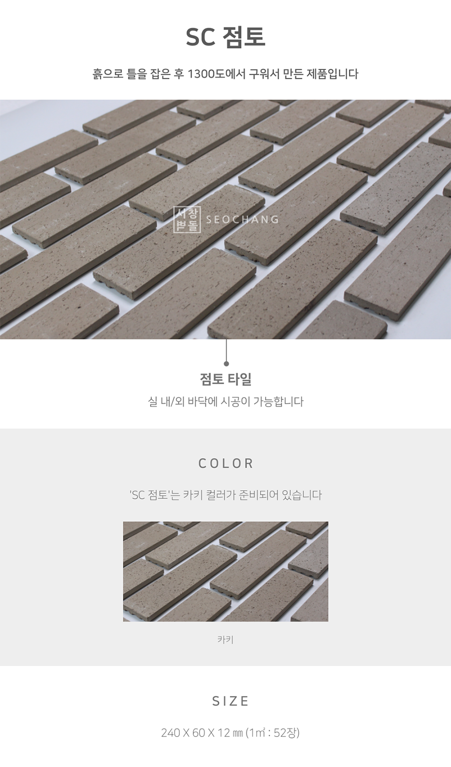 SIZE : 240X60X12㎜ (1㎡ : 52장)