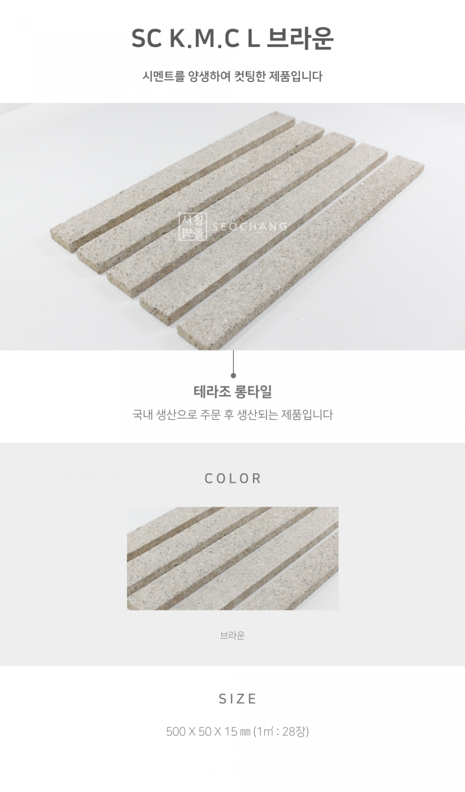 'SC K.M.C L 브라운'은 시멘트를 양생하여 컷팅한 제품으로 국내 생산으로 주문 후 생산되는 제품입니다.