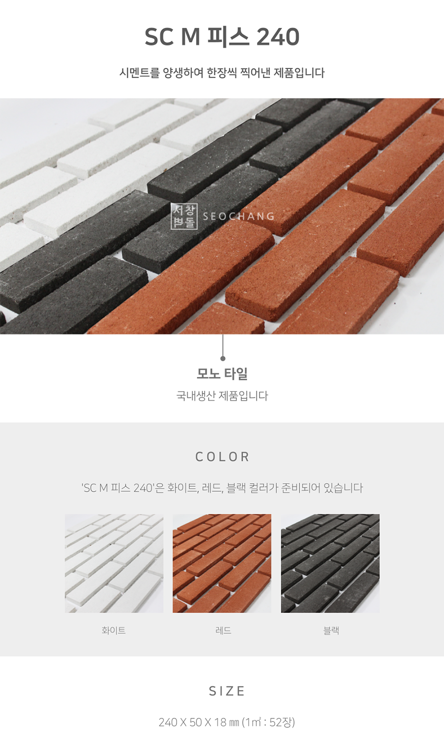 SIZE : 240X50X18㎜ (1㎡ : 52장)
