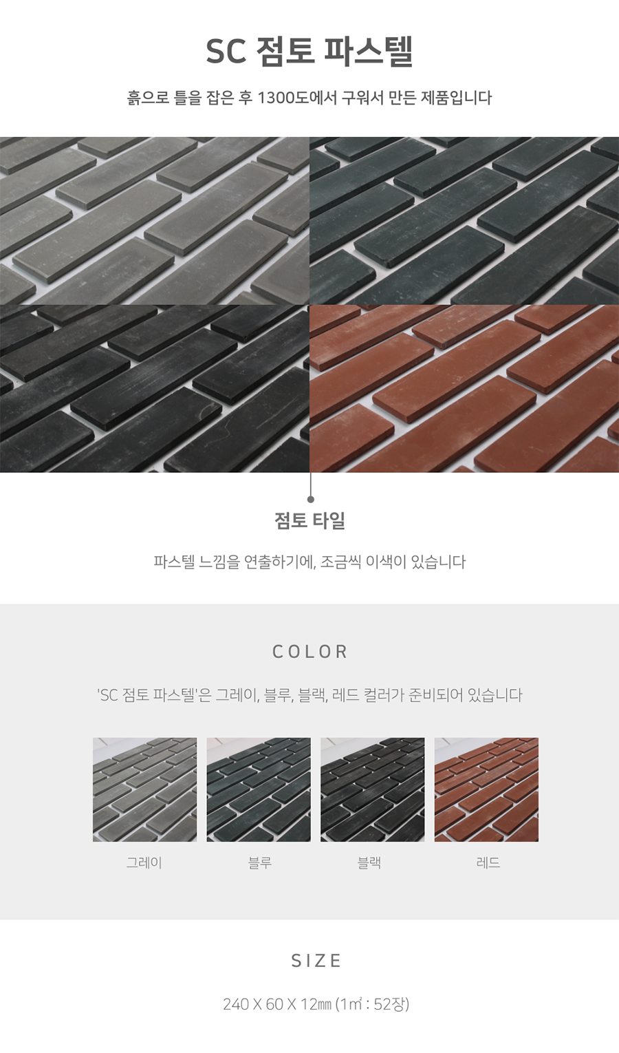 SIZE : 240X60X12㎜ (1㎡ : 52장)