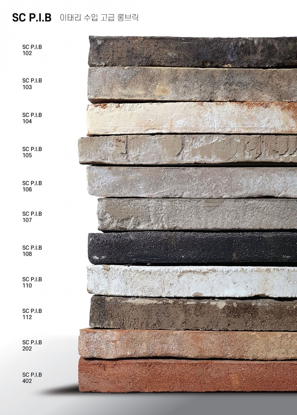 11종의 다양한 색상을 가진 서창벽돌 P.I.B 라인입니다.