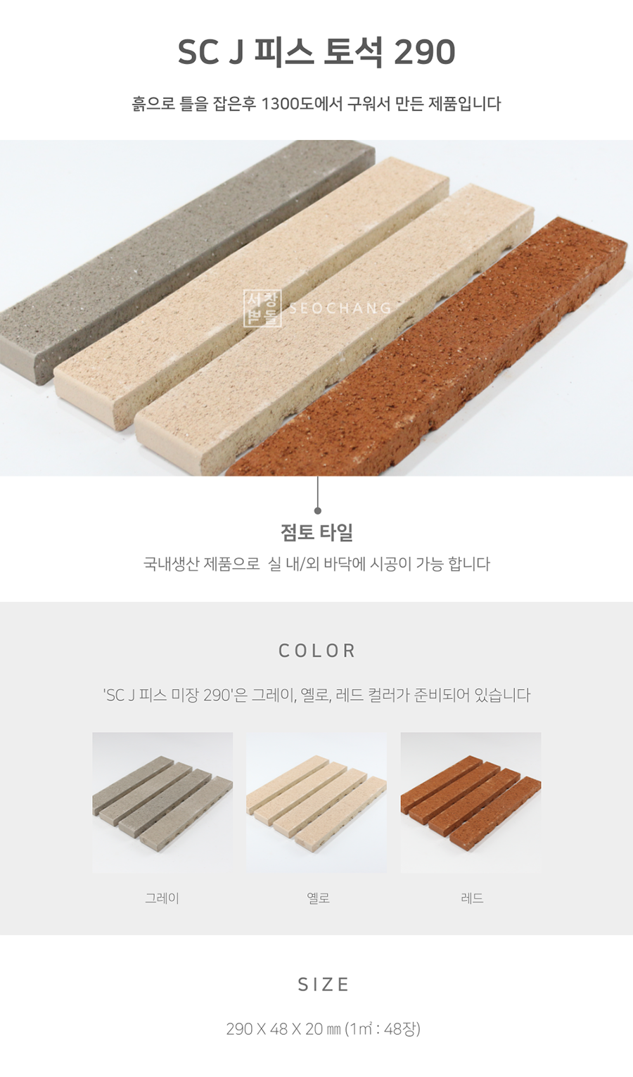 SIZE : 290X48X20㎜ (1㎡ : 48장)