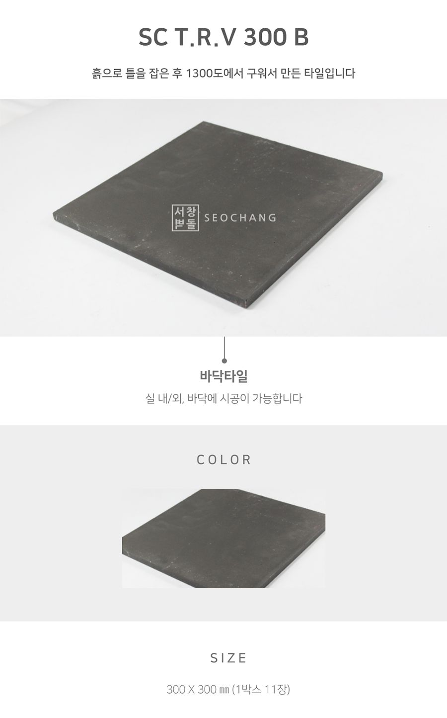 흙으로 틀을 잡은 후 1300도에서 구워서 만든 제품으로, 실내외 바닥에 시공이 가능 합니다.