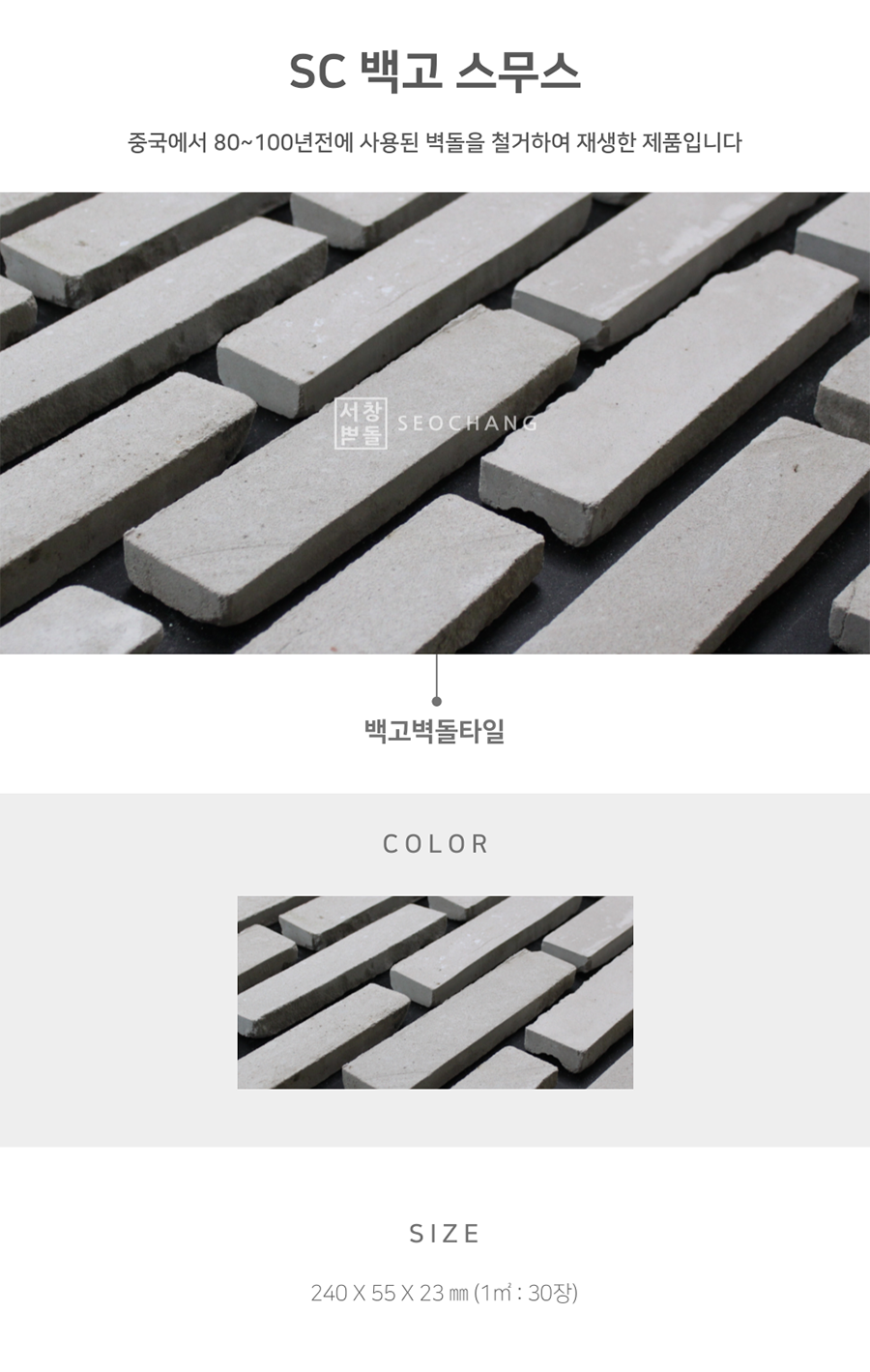 SIZE : 240X55X23㎜ (1㎡ : 30장)