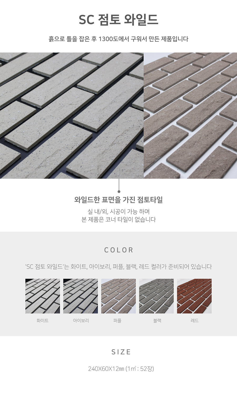SIZE : 240X60X12㎜ (1㎡ : 52장)