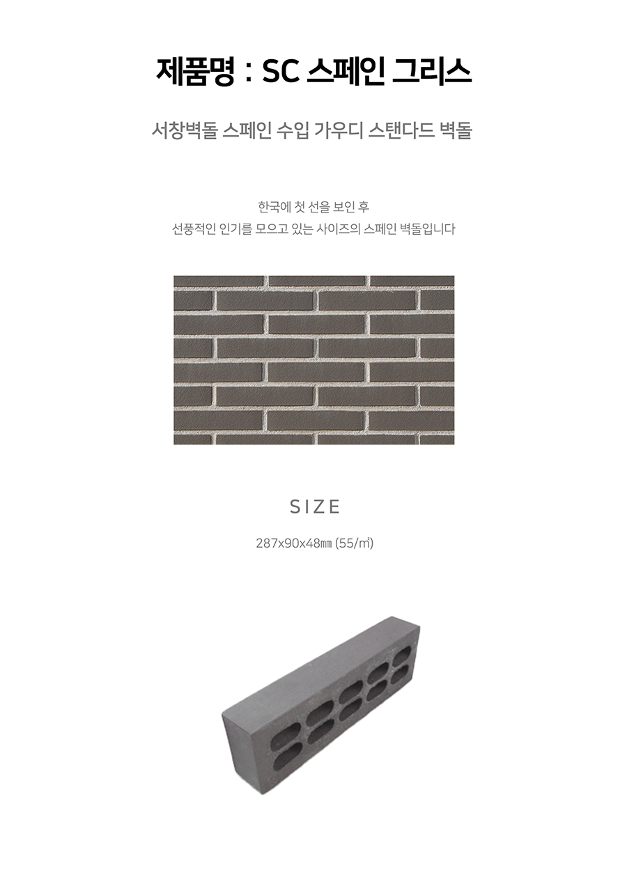 스페인의 건축감성을 느낄 수 있는 크링커 벽돌 시리즈로 한국에 첫 선을 보인 후 선풍적인 인기를 모으고 있는 사이즈의 벽돌입니다.