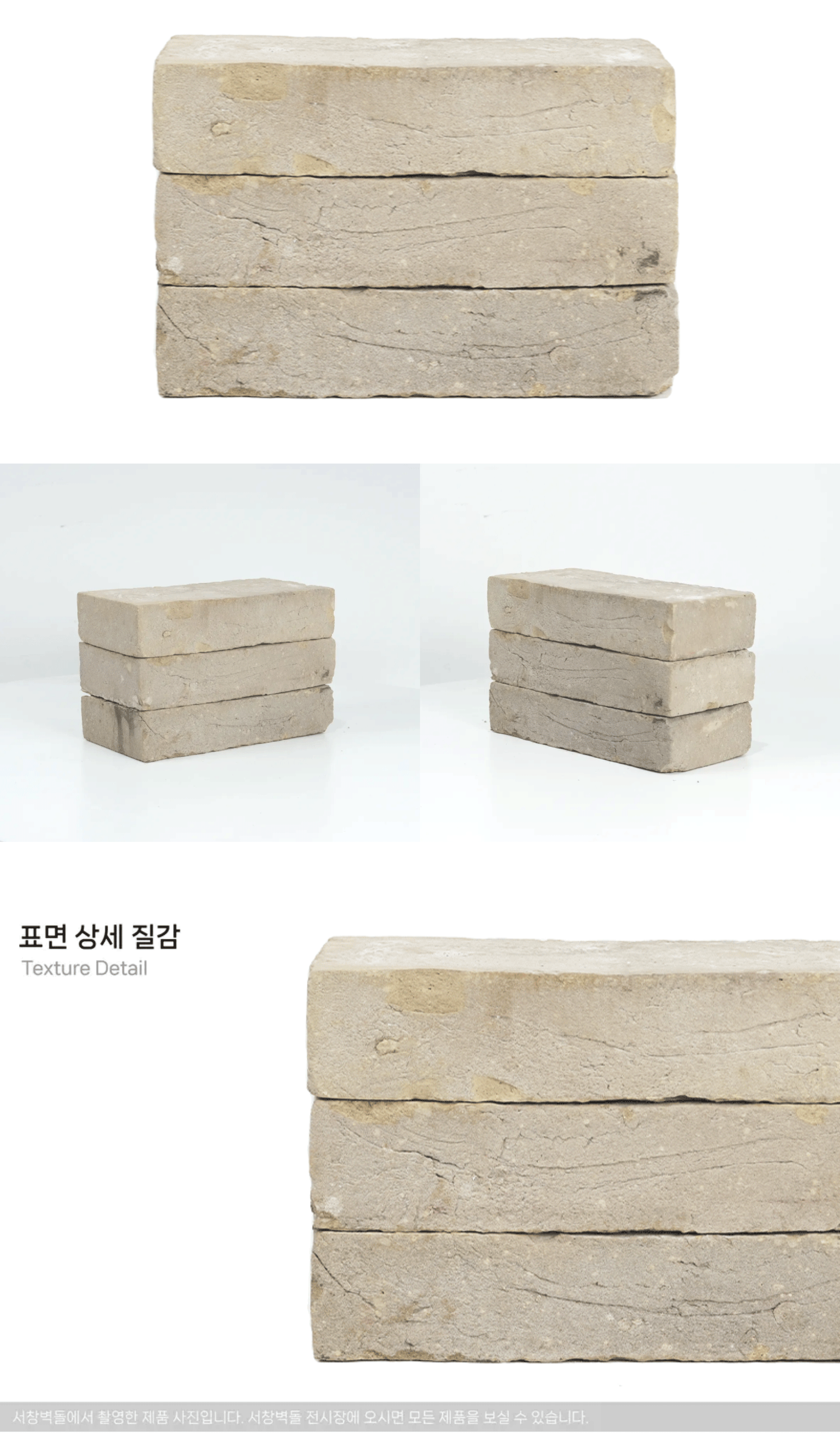 미묘한 질감을 표현되어있고, 색상은 아이보리 빛이 빛바랜듯하게 도는 흰색&아이보리 계열의 벽돌입니다.