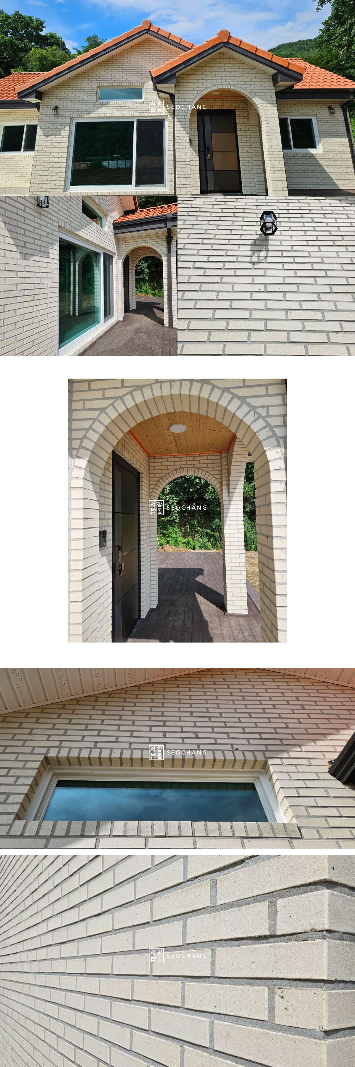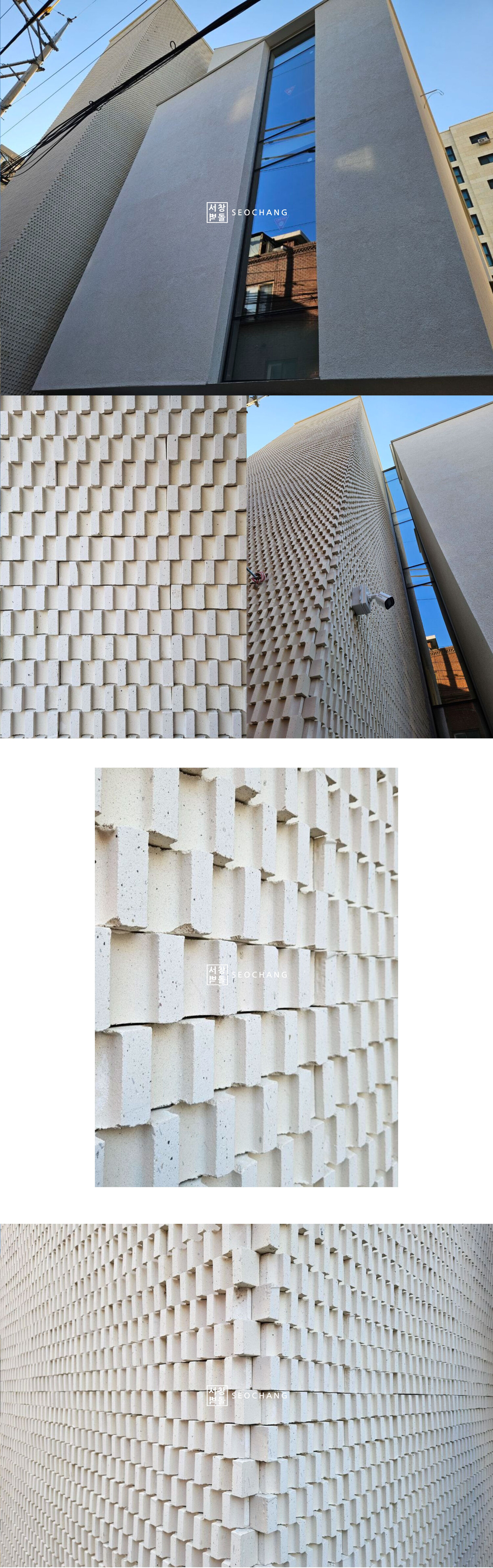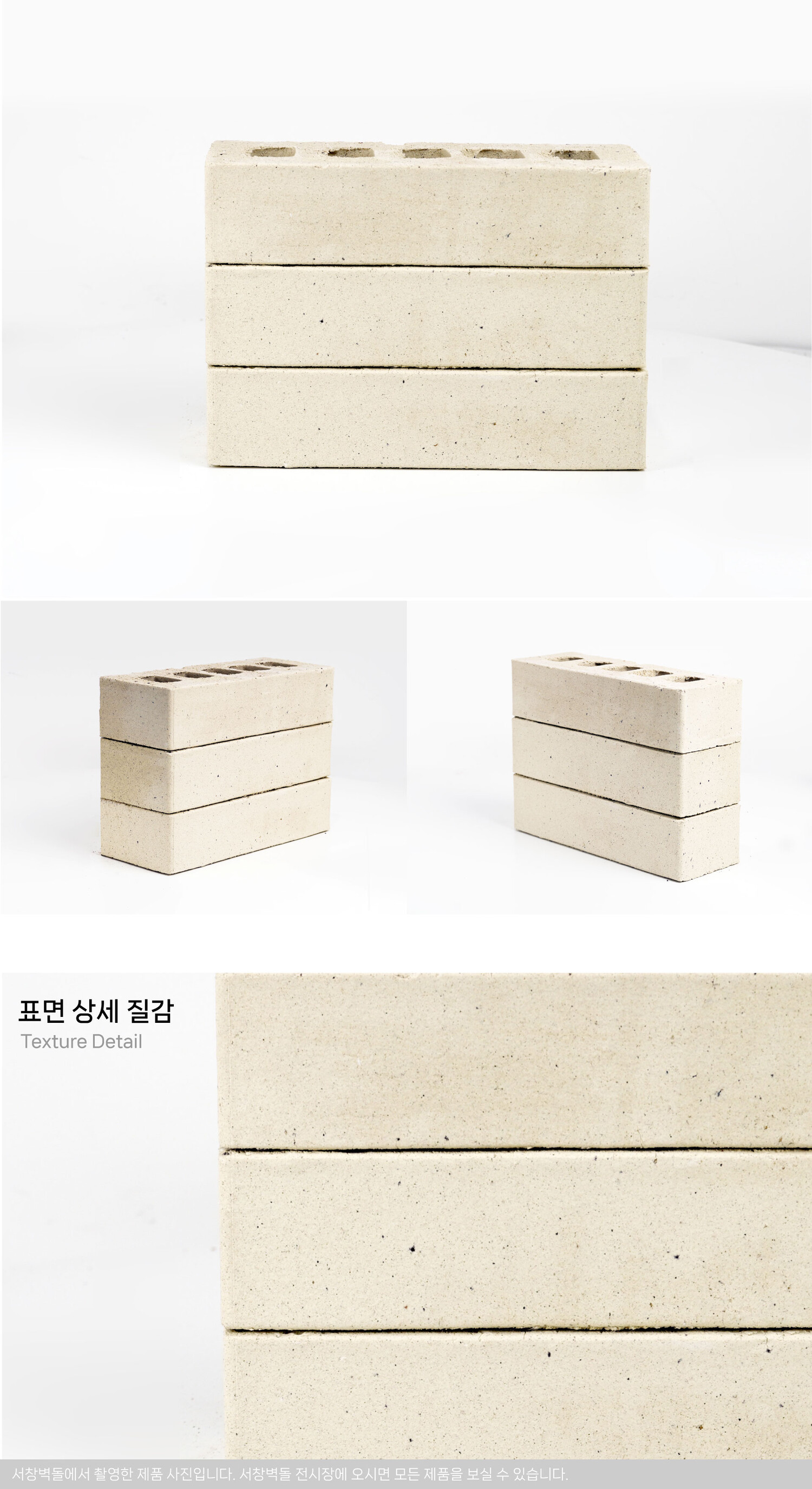 고운 표면과 입자로 이색이 없는 깔끔한 화이트 벽돌입니다
